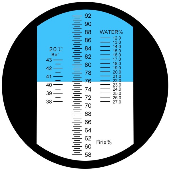 - Rozsah merania: 58-92% Brix, 38-43 Be ° (Baume), 12-27% Voda