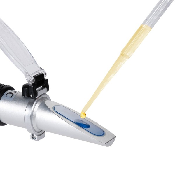 Optický refraktometer bez osvetlenia slúži na rýchle a jednoduché zistenie obsahu vody v mede. Med musí byť číry a tekutý, skryštalizovaný med je potrebné ztekutiť.