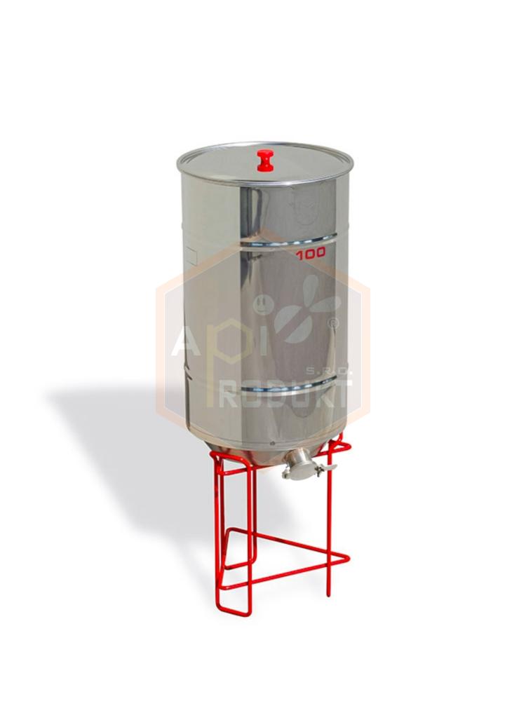 z nehrdzavejúcej ocele, O 378 mm, výška 675 mm, s nerezovým výpustným ventilom na med a plne vyprázdniteľným dnom.Usadzovacie nádoby „ZERO“ z nehrdzavejúcej ocele AISI 304 majú špeciálne tvarované dno s úplným odtokom, ktoré umožňuje nastaviť výpustný ventil na najnižšom bode dna, čím sa zabezpečí úplné vyprázdnenie medu z nádoby. Kovový stojan je nevyhnutný pre stabilitu nádoby.